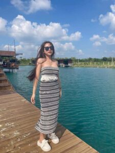 ก็ไม่เบานะเหมือนปิดมิดแต่ไม่ใช่เลยเสื้อรัดรูปสีขาว ผ้าบางจนเห็นข้างในชัดเลยด้วย ชุดว่ายน้ำทูพีช สีขาวน้ำเงินลาย กางเกงขาสั้นสีขาว ที่แนบเนื้อไปหมด แอบหยิบแว่นมาใส่พรางหน้าเล็กน้อยไม่ให้ใครจำได้ แต่ลุคนี้กลับ เซ็กซี่ ไปอีกอย่างหนึ่งเห็นแล้วฟีลมันได้อ่ะ ที่เหลือใน ไอจี ก็จะเป็นภาพ vlog ของสาวนักศึกษาท่านหนึ่งในเวอร์ชั่นต่าง ๆ ตอนไปเรียน เราเห็นแล้วก็นะ สาวนักศึกษาดูทีไรก็ไม่เบื่อ